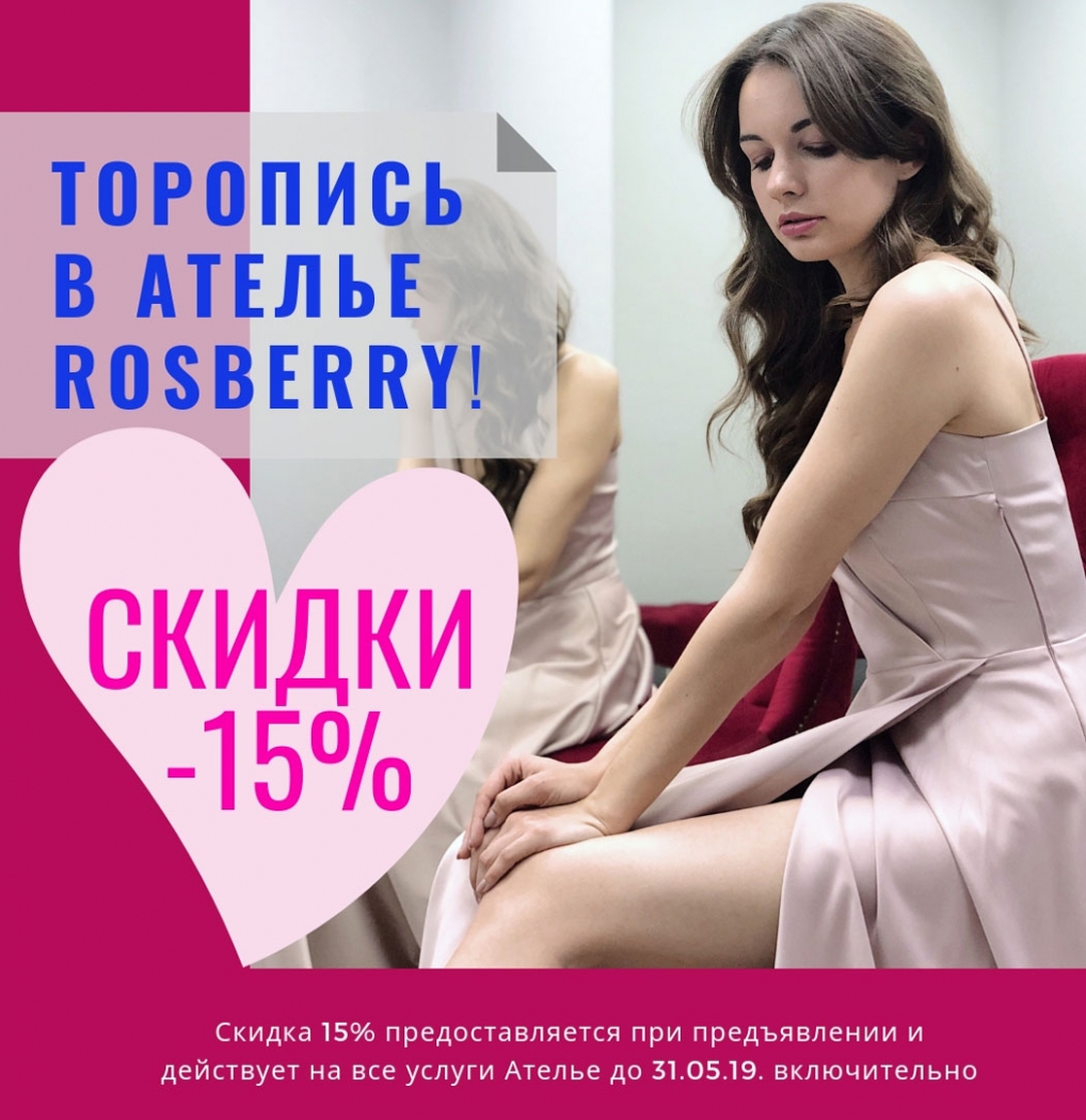 Ателье Rosberry закрывает сезон весенних акций на площадке «МОСКВА-СОКОЛ». До 31 мая все услуги ателье предоставляются со скидкой 15%.