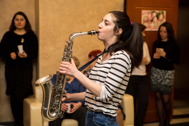 7 марта в московском офисе холдинга зазвучал саксофон. Предпраздничный день был полон приятных сюрпризов. Живая музыка, нежные тюльпаны, украшенные поздравительными картинками коридоры, искренние добрые слова, улыбки – всё это мужская часть холдинга щедро дарила женской половине.