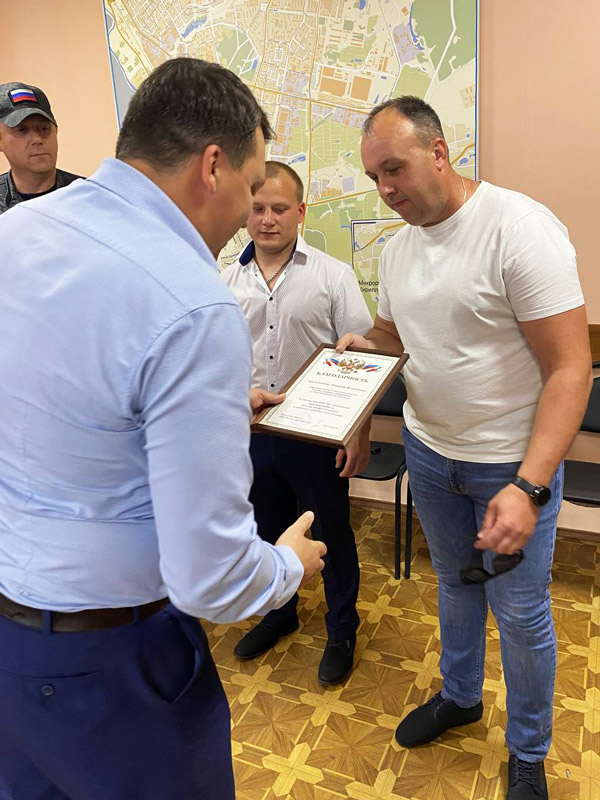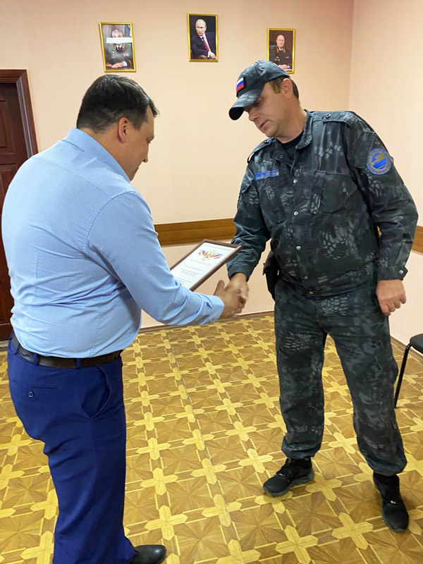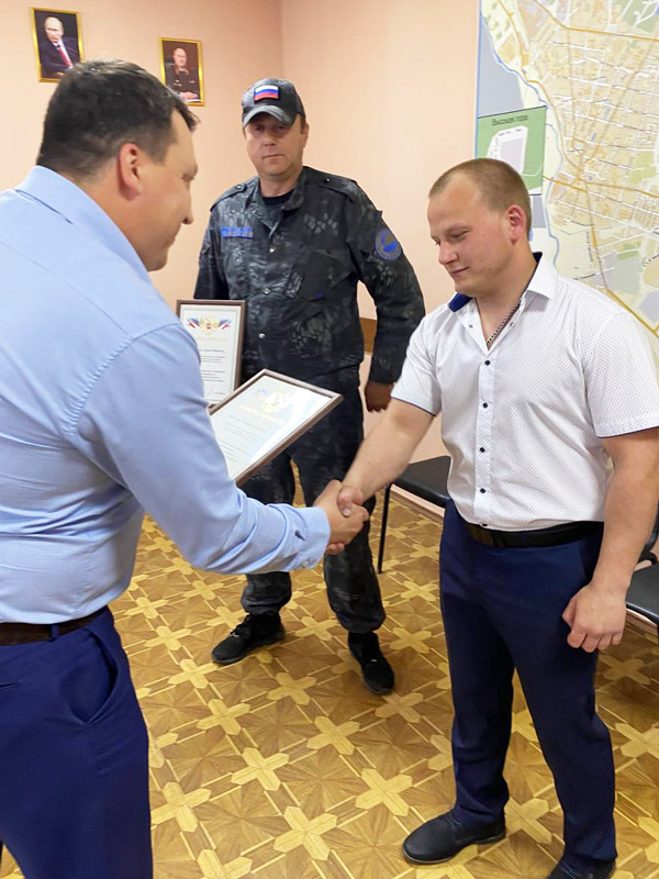Награждены сотрудники групп быстрого реагирования (ГБР) ООО ЧОП «СОЦИУМ-КРЕПОСТЬ ПОВОЛЖЬЕ» Сергей Ваданов, Дмитрий Красильников, Роман Горшков и Владимир Шмелёв, которые во время рейда задержали преступника.