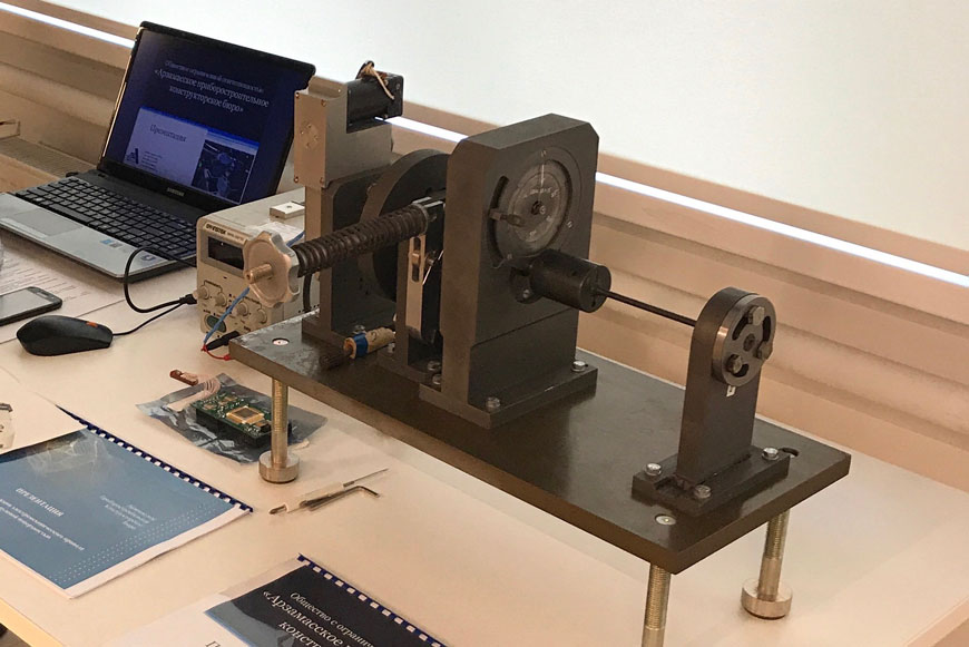 Молодые инженеры ООО «АПКБ» и АО «АПЗ» Виктор Делавин (инженер-электроник АПКБ), Татьяна Малюгина (инженер-программист АПКБ) и Анатолий Абаимов (инженер-электроник АПЗ) выступали с темой «Разработка электромеханического привода управления рулевой поверхностью». На конкурсе был представлен макетный образец электропривода, установленный на специально разработанном для него нагрузочном стенде, с устройством управления приводом. Также была продемонстрирована работа электромеханического привода с моделированием условий, приближенных к реальным (был сымитирован внешний номинальный момент 20 Н/м, момент инерции, момент трения).