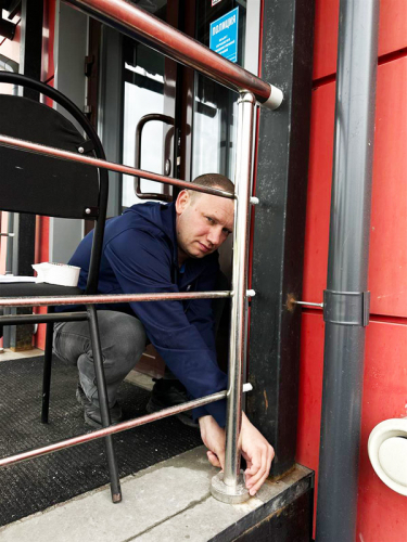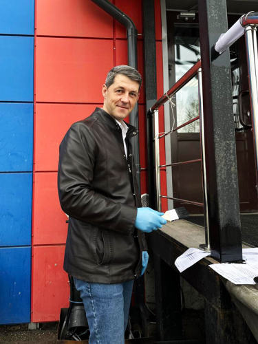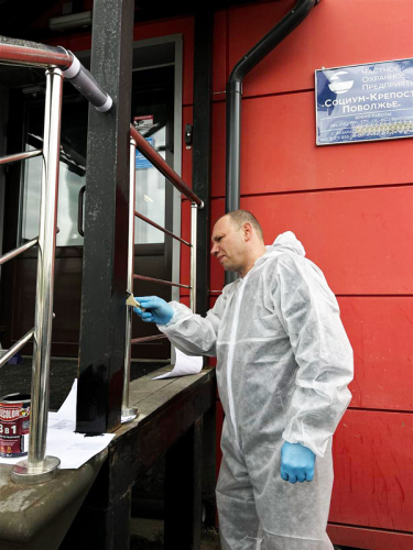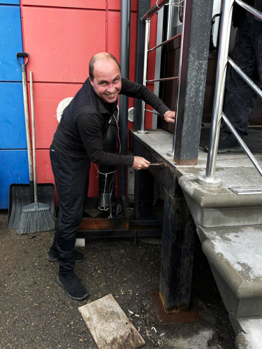 Главным образом обновили входную группу главного входа в офис – визитную карточку компании для посетителей: помыли, почистили, подкрасили.
