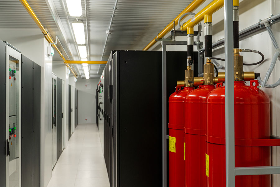 В случае возникновения пожара в ЦОД III сработает автоматическая система газового пожаротушения: в помещение подаётся специальный газ, который препятствует процессу горения. Газ условно безопасен: вдохнув его, человек не отравится, но необходимо своевременно покинуть помещение.