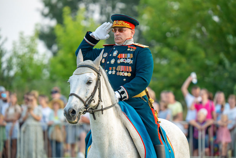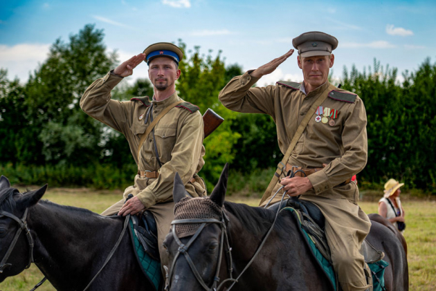 Отдельный блок конного шоу был посвящён Великой Отечественной войне. Профессиональные наездники и реконструкторы в исторических костюмах демонстрировали восхищённым зрителям конную подготовку, трюки и мастерство джигитовки.