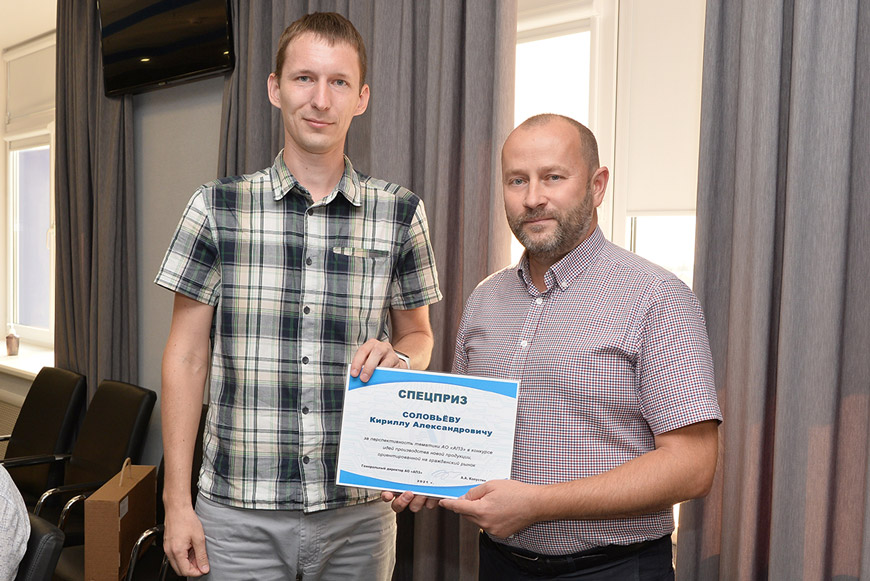 Спецприз за профильность тематики достался Кириллу Соловьёву. Он получил подарочный набор и рюкзак с корпоративной символикой АПЗ.