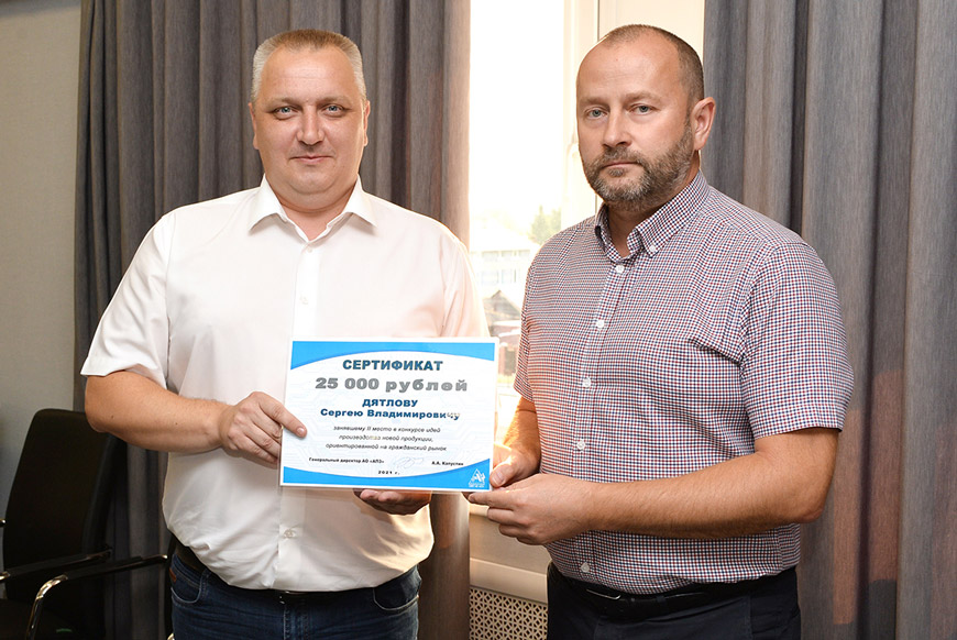 – В этот раз было несколько абсолютно новых идей, далёких от нашего производства. Но мы понимаем, что это перспективные направления. Первое место получил проект по антибактериальной теме, которая стала уже «родной» в период пандемии. Надеюсь, что в ближайшем будущем новое изделие дополнит линейку гражданской продукции завода, – прокомментировал Андрей Анатольевич. – Этим конкурсом мы хотели пробудить инициативу на предприятии. Пусть успешная реализация проектов станет существенной прибавкой к доходам предприятия, от которых зависит и заработная плата заводчан. Планируем в дальнейшем провести конкурс и по спецпродукции. Благодарю всех участников!