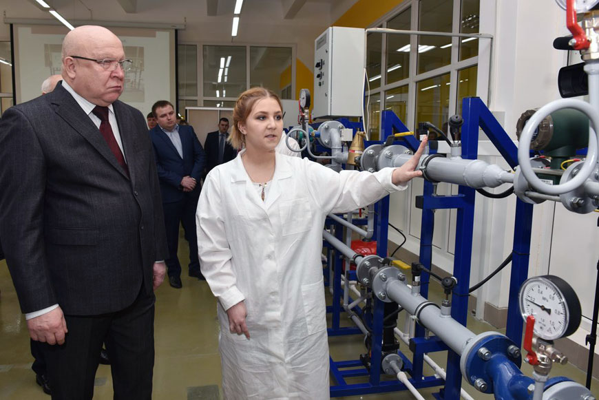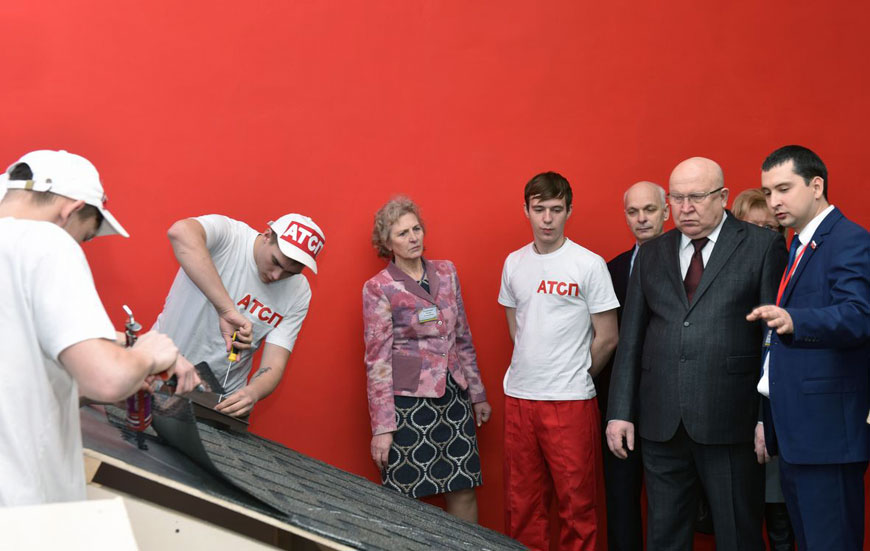 Директор ГБПОУ «АТСП» Олег Бабушкин провёл для почётных гостей экскурсию по аудиториям (кабинет информационных технологий в ЖКХ, три кабинета теоретического обучения), лабораториям, которые оснащены современным оборудованием (санитарно-техническая, теплотехники и измерительной техники) и мастерским (сварочный, а также по изготовлению и ремонту пластиковых окон).