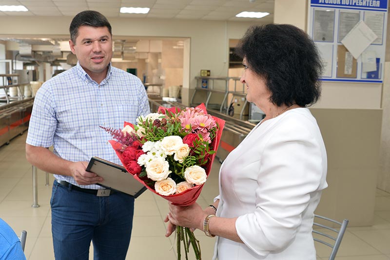 – От всей души поздравляю вас с вашим юбилеем! Вы поддерживаете энергию и хорошее настроение нашего персонала, рабочих, конструкторов, инженеров – всех тех, кто приходит к вам в столовую. Это тяжёлый труд, который заслуживает уважения и огромной человеческой оценки. Очень приятно видеть здесь ветеранов, которые не разрывают связь с предприятием и со своим коллективом, видят, что здесь произошли большие перемены. К вашему юбилею, к 60-летию предприятия, мы сделали подарок: отремонтировали столовые и сделали комфортными условия в пунктах общественного питания, которые соответствуют всем новым стандартам, и на этом мы не остановимся.