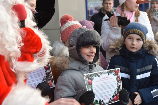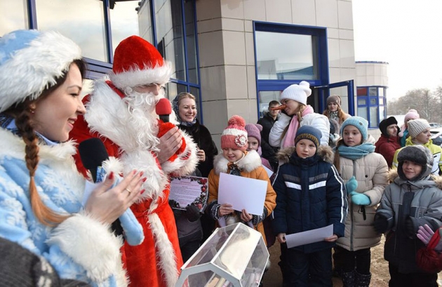 У проходной для ребят организовали большой праздник. Дети вместе с лотерейными билетом получили в подарок «киндер-сюрпризы». Потом к ним в гости пожаловали сказочные герои. Они развлекали детвору, водили хороводы, устраивали конкурсы. Кульминацией праздника стал розыгрыш, который провели главные новогодние волшебники – Дед Мороз и Снегурочка. Именно они назвали имена 20 счастливчиков, выигравших поездку в Москву.
