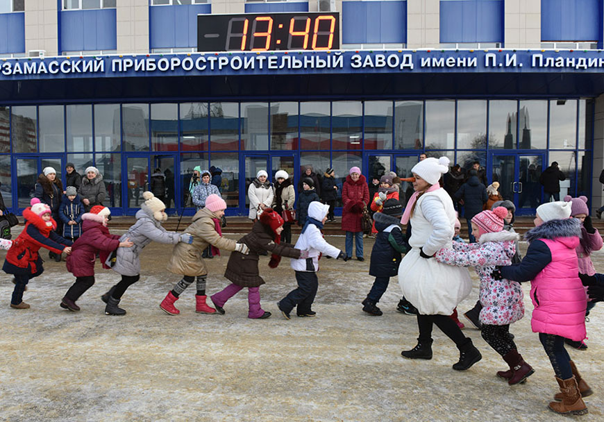 Детский праздник у проходной Арзамасского приборостроительного завода