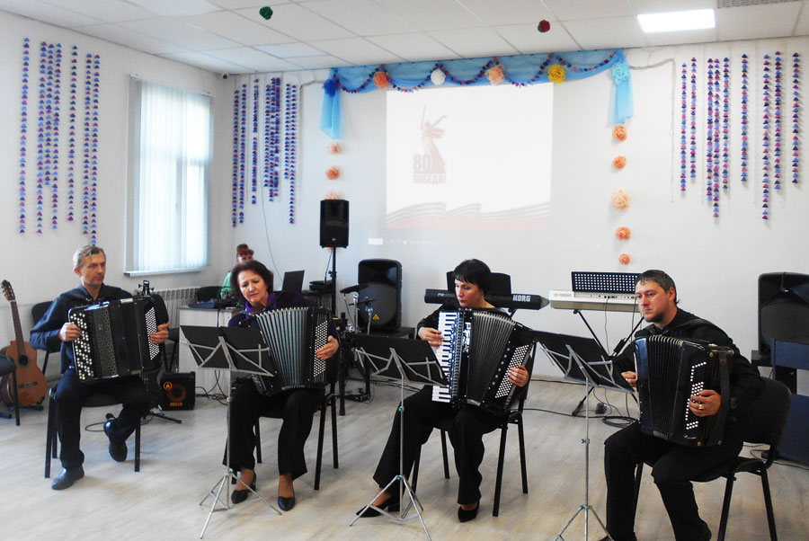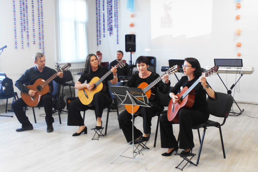 Песни военных лет, попурри старых всеми любимых мелодий стали основной полуторачасового концерта. На импровизированной сцене гитаристов сменяли гармонисты, скрипачи, вокалисты, а в конце выступил оркестр народных инструментов.