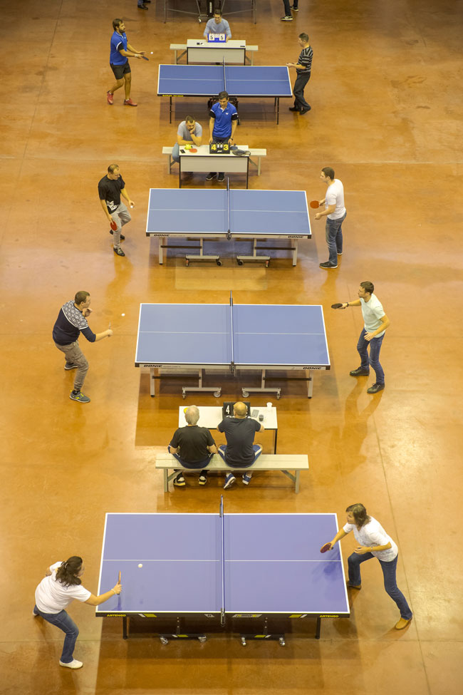 Изначально все участники были распределены на группы – 2 группы в женской лиге и 5 групп в мужской. Судья Михаил напомнил о современных правилах – игра идёт до 11 очков, проводятся 5 партий до 3 побед. И битва началась!