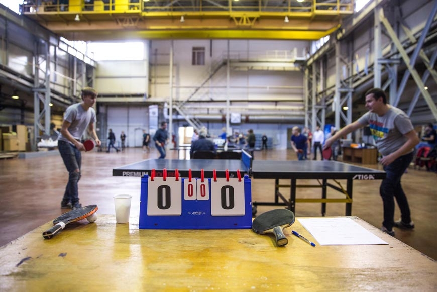 Днём 3 ноября состязания были в самом в разгаре. Обстановка в цехе КБ-1, который на время соревнований оборудовали теннисными столами, накалилась.