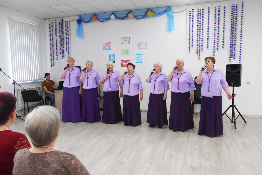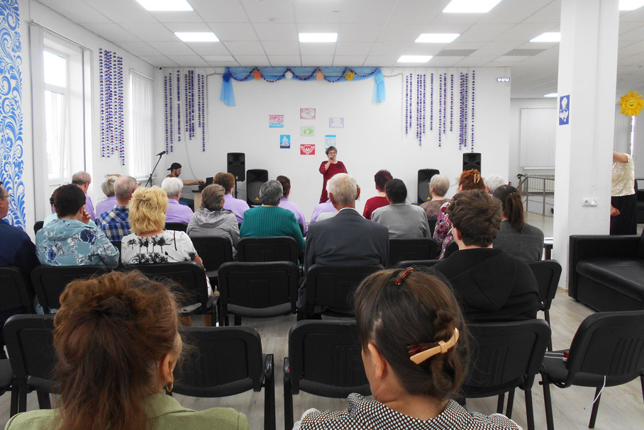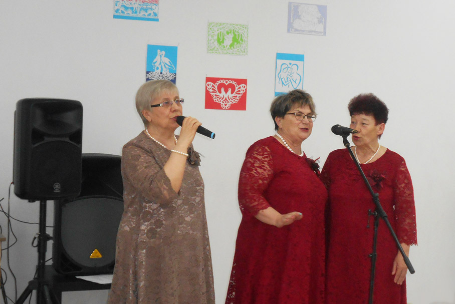 За концертную программу на этот раз отвечали самодеятельные артисты из Шатковского дома культуры. Им удалось создать очень тёплую семейную атмосферу в зале. А участники коллектива Общественного центра предварительно собрали информацию о виновниках торжества и рассказали о каждой паре.