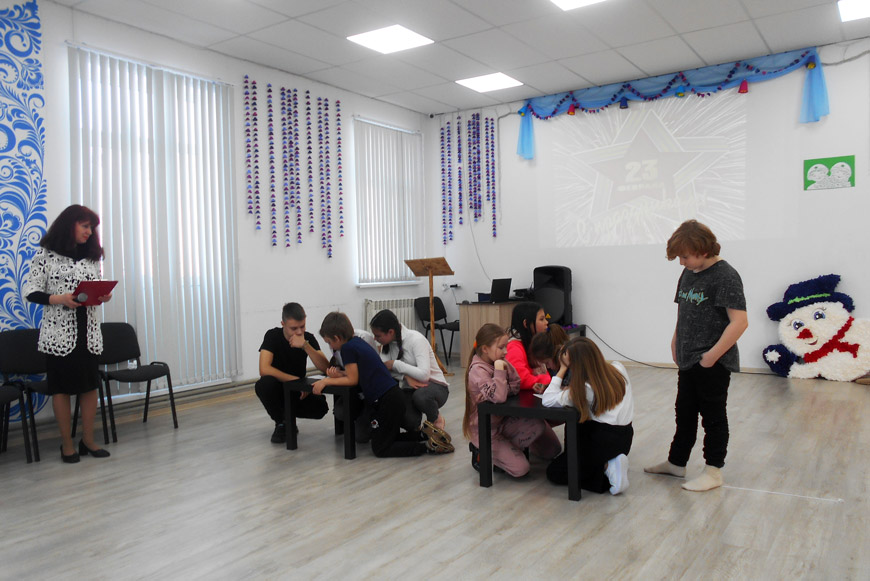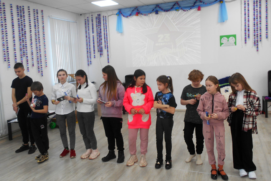 На этот раз в честь 23 февраля был и концерт, подготовленный ребятами, с танцевальными и песенными номерами, и конкурс «Солдатская смекалка», где интеллектуальные задания перемежались с подвижными.