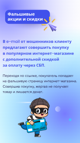В письме от мошенников клиенту предлагают совершить покупку с дополнительной скидкой за оплату через систему быстрых платежей. После этого приходит QR-код или ссылка на оплату. Кажется, всё просто и выгодно, но это ловушка! Переходя по ссылке, покупатель попадает на фальшивую страницу интернет-магазина. Совершив покупку, жертва не получает товар и лишается денег.