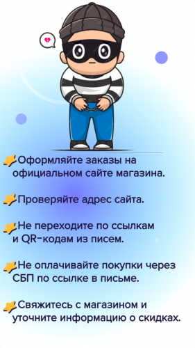 - Не оплачивайте покупки через СБП по ссылке в письме, безопаснее оформить заказ на официальном сайте магазина.