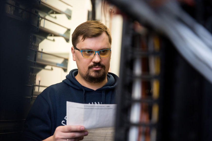 Серверная защищена от пожаров и протечек, оснащена современным вентиляционным оборудованием, а температура и влажность воздуха здесь поддерживается не хуже, чем в картинной галерее. Когда делали первый дата-центр, то работали вместе с партнёрами и старались всему у них учиться, теперь и у нас есть специалисты, которые могут организовать ЦОД с нуля. Я всем новым сотрудникам говорю, что не страшно что-то не знать, страшно, когда ты не знаешь, где найти ответ на свой вопрос, – говорит Владимир Буренин.