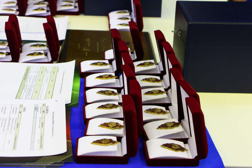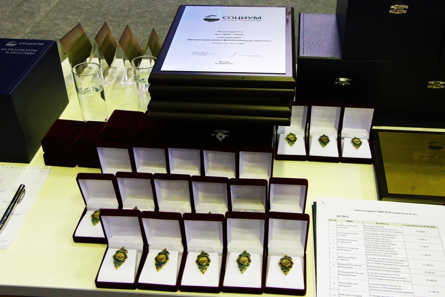 Специальные знаки отличия получили ветераны, проработавшие более 10 лет (красный знак), более 15 лет (зелёный знак) и более 20 лет (синий знак). Награды вручали генеральный директор «СОЦИУМ-А» Руслан Ашурбейли и корпоративный директор Андрей Данько.