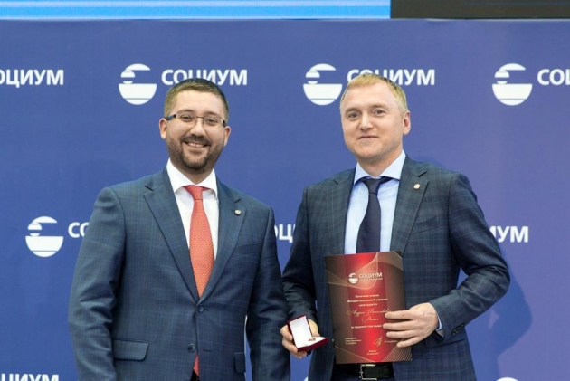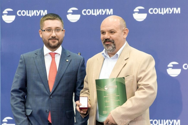 Золотой знак и звание «Ветеран «СОЦИУМА» I степени получают те, чья трудовая деятельность связана с холдингом на протяжении более чем 25 лет. В этом году звание «Ветеран «СОЦИУМА» I степени получил основатель холдинга Игорь Рауфович Ашурбейли. Золотой знак ему вручил корпоративный директор Андрей Вячеславович Данько.