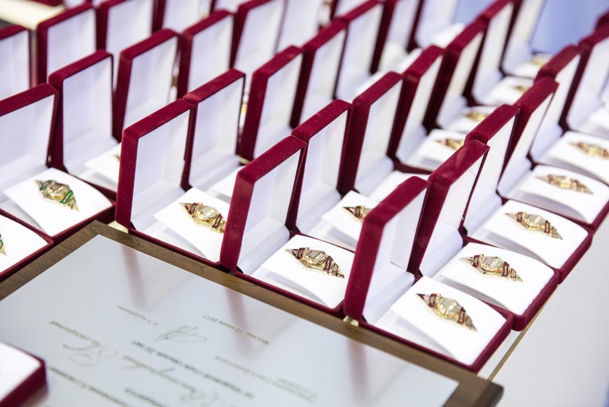 Специальные знаки отличия получили ветераны, проработавшие более 10 лет (красный знак), более 15 лет (зелёный знак), более 20 лет (синий знак) и более 25 лет (золотой знак). Награды вручал генеральный директор «СОЦИУМ-А» Руслан Ашурбейли.