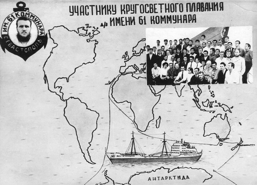 Вышли из порта Севастополь 25.12.1968 года. Прошли Атлантический, Тихий, Индийский океаны. Пролив Дрейка. Моря Антарктики: Беллинсгаузена, Амундсена, Скотта, Росса, Дюрвиля; Тасманово и другие. Пройдено 39824 мили. Посетили порты Веллингтон, Мельбурн, Лас–Пальмас. Возвращение в Севастополь 15 июня 1969 года».