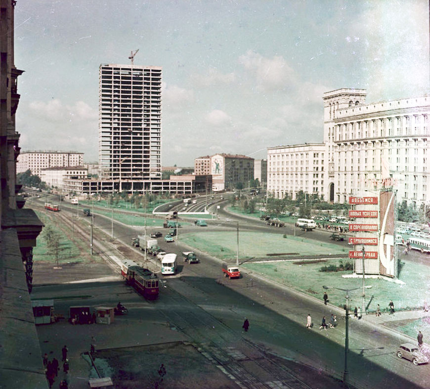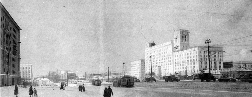 Архитектурной доминантой площади должна была стать высотка института Гидропроект в центре проспекта.