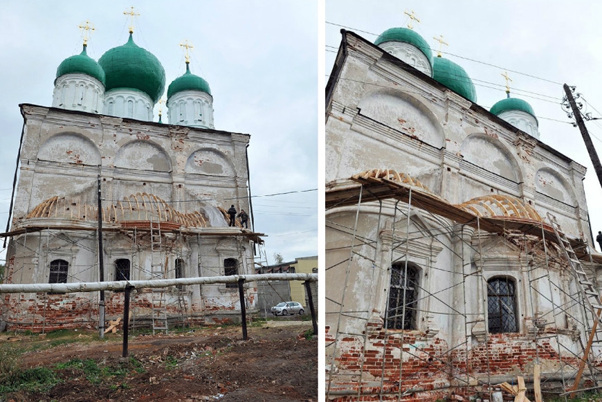 Идёт ремонт апсид с внешней стороны храма. Фото Елены Галкиной