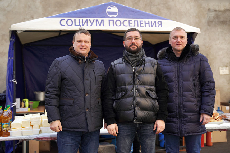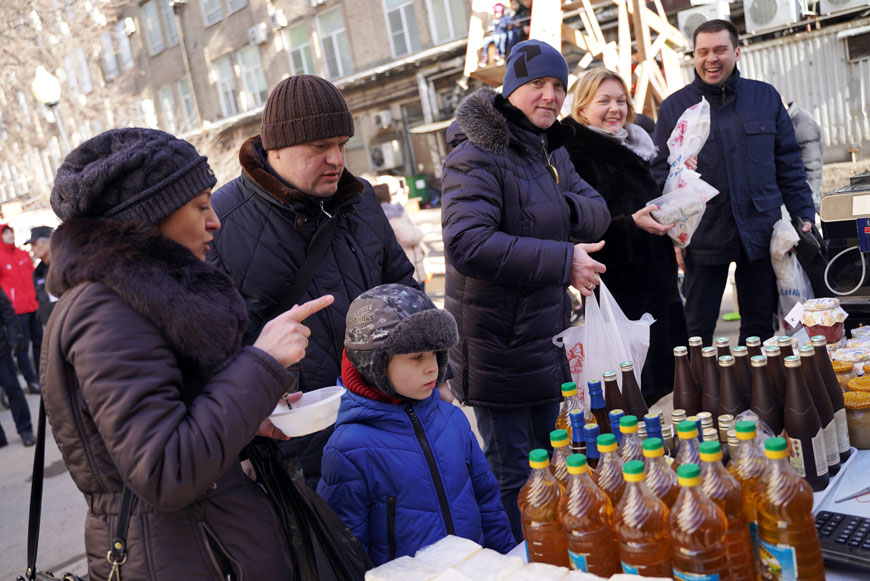 Разносолы прибыли рано утром из Нижегородской области, и приготовили их специально для нашей масленичной ярмарки. Сотрудники компании «СОЦИУМ-ПОСЕЛЕНИЯ» и её партнеры-фермеры коптили свинину, курятину, говядину, сало, рыбу, закручивали тушёнку в банки, чтобы привезти в Москву всё самое лучшее, что у них есть.