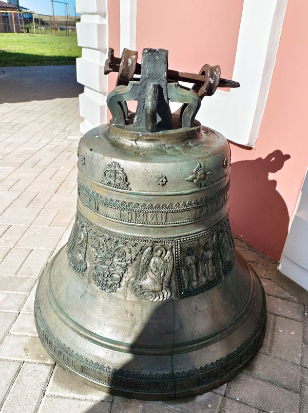 «Этот колокол выбросили, когда храм разрушали. Он расколот и лишился языка, – пояснил местный настоятель отец Владимир. – На колокольню его решили не поднимать. Пусть остаётся здесь, на видном месте, напоминая о временах, к которым не хочется возвращаться».