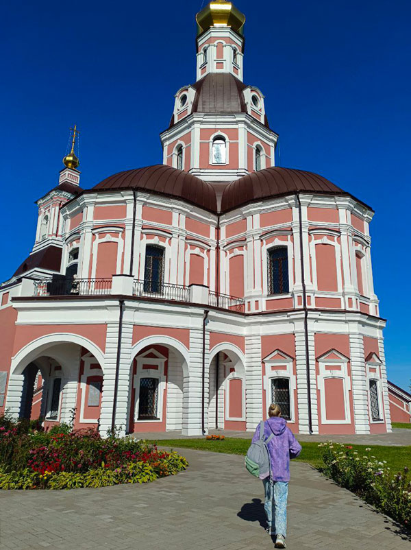 Мы стоим с ним, молчим некоторое время, смотрим на церковь, на большой пруд у храмового подножия, добавляющий пейзажу живописности. Отражение роскошного архитектурного сооружения колышется на поверхности воды под лёгким ветерком, погода прекрасная.