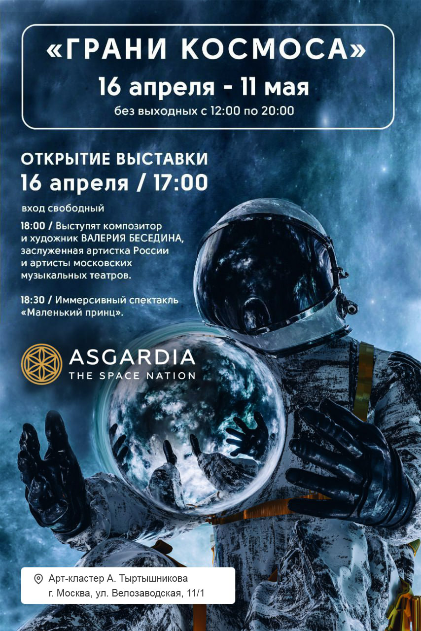 Выставка «ГРАНИ КОСМОСА» продлится до 11 мая 2025 года. В программе – встречи с космонавтами, лекции и специальные мероприятия, которые позволят посетителям по-новому взглянуть на взаимосвязь искусства и космических технологий. Проект обещает быть уникальным, раскрывая Вселенную через живопись, скульптуру, фотографию, digital art, а также инновационные технологии, включая световые и кинетические инсталляции.