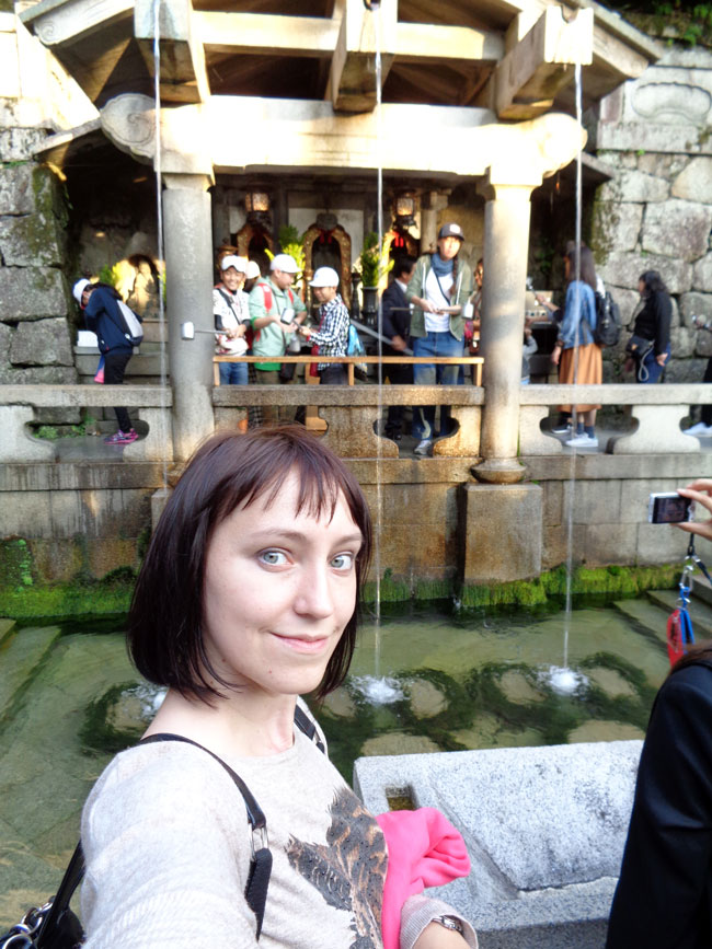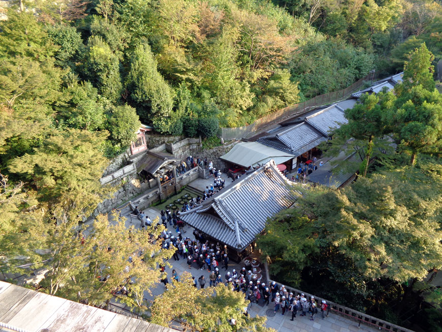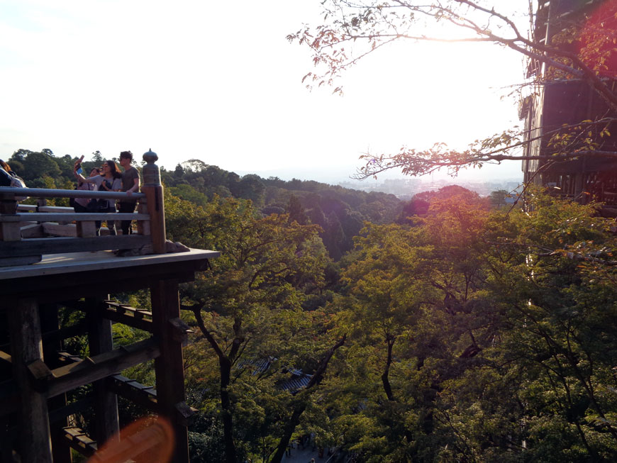 Знаменитейший из храмов Киото, храм Чистой воды. С террасы открывается прекрасный вид на город. И хотя мы расстроились, что павильон на длительной реконструкции, это не помешало нам насладиться видами. Народ с удовольствием делает селфи на фоне заката.