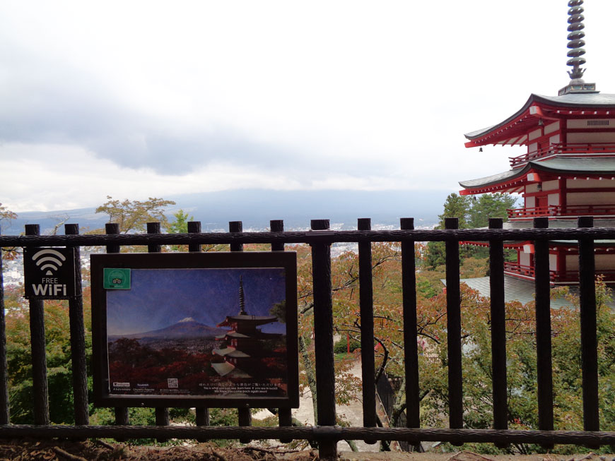 Мы поднялись к знаменитой пагоде Чурейто, виды которой печатают во всех рекламных буклетах, но погода нам не благоволила, на горы опустились низкие облака и туман.