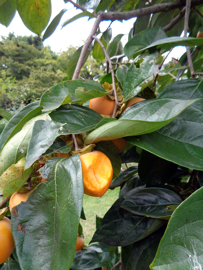 Мы долго смеялись, гадая, кто это мог быть, а потом заметили на газоне останки ещё одной хурмы. Видимо та, на дереве, была незрелая!