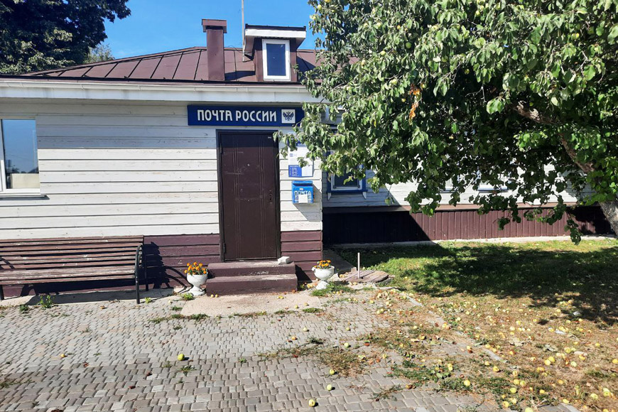 Возле входа на почту очень щедрая яблоня, которая обильно «сорит» плодами. Деревья в садах сгибаются под тяжестью яблок и груш.
