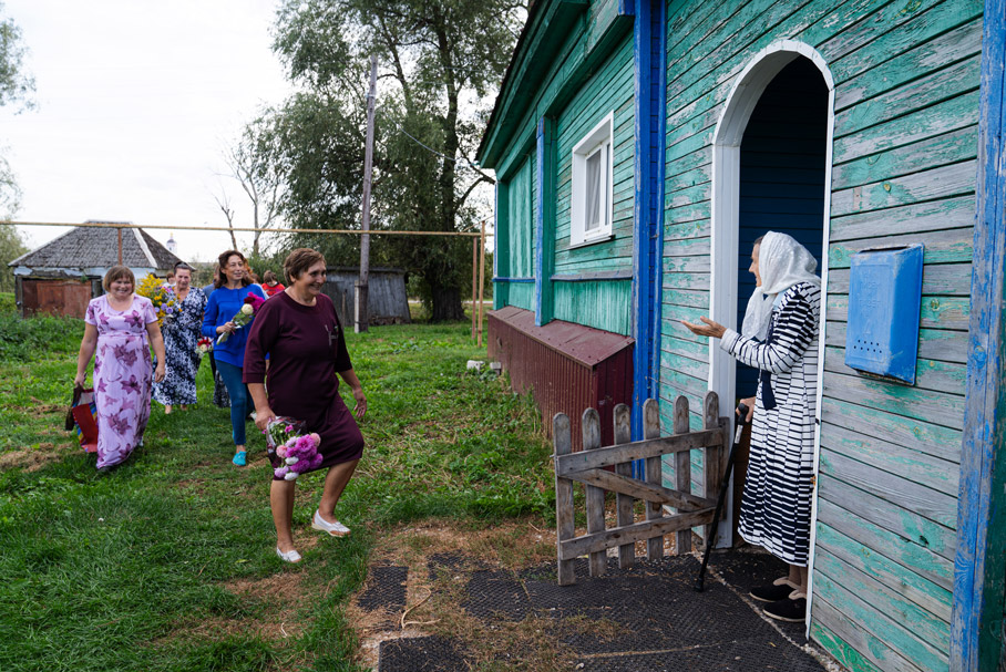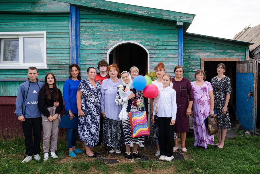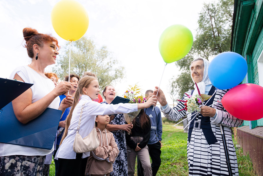 Односельчане Волкову очень любят. Поэтому и поздравлять её отправились с большим удовольствием. По дороге от Общественного центра до дома Лидии Ивановны шли весело, привлекали внимание прохожих парадными нарядами, яркими букетами и шариками.