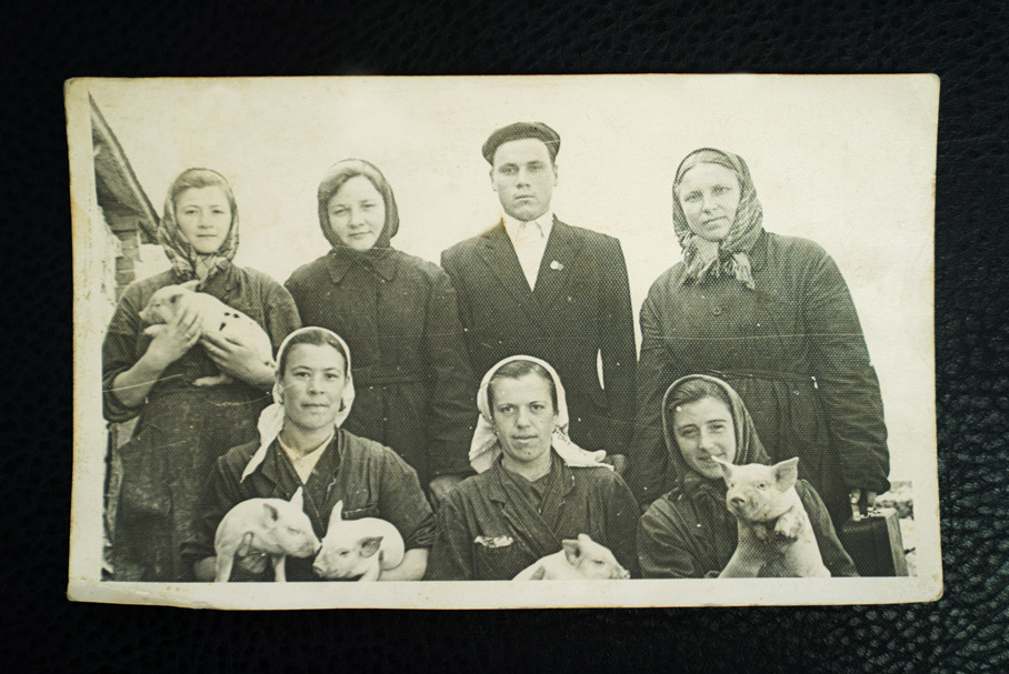 Свинарки колхоза «Власть Советов». В нижнем ряду справа – Лидия Волкова. В этом колхозе она проработала сорок лет. Была свинаркой, телятницей, дояркой и сторожем в конторе, куда устроилась после болезни.