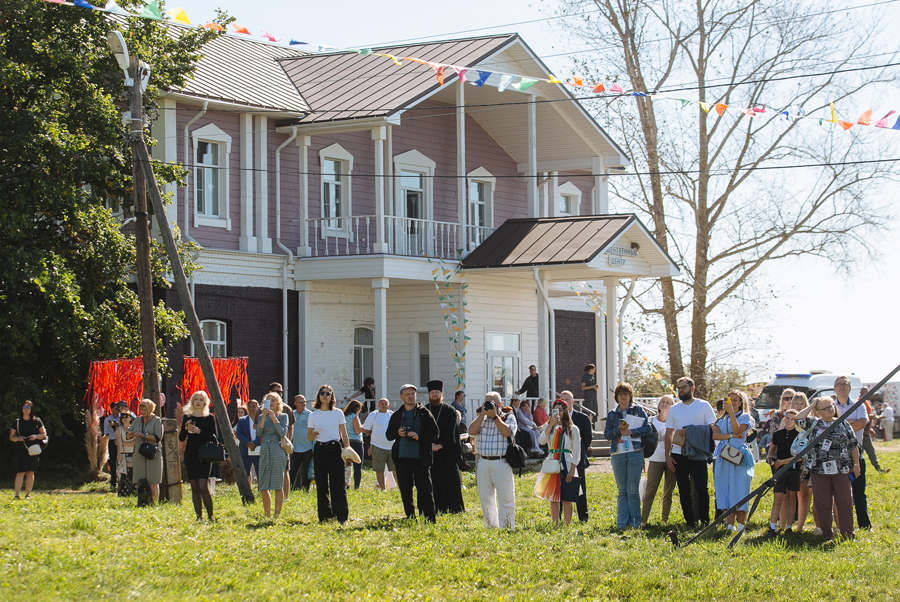 Гости собираются у Общественного центра для празднования Дня села Хирино. Сентябрь 2024 года