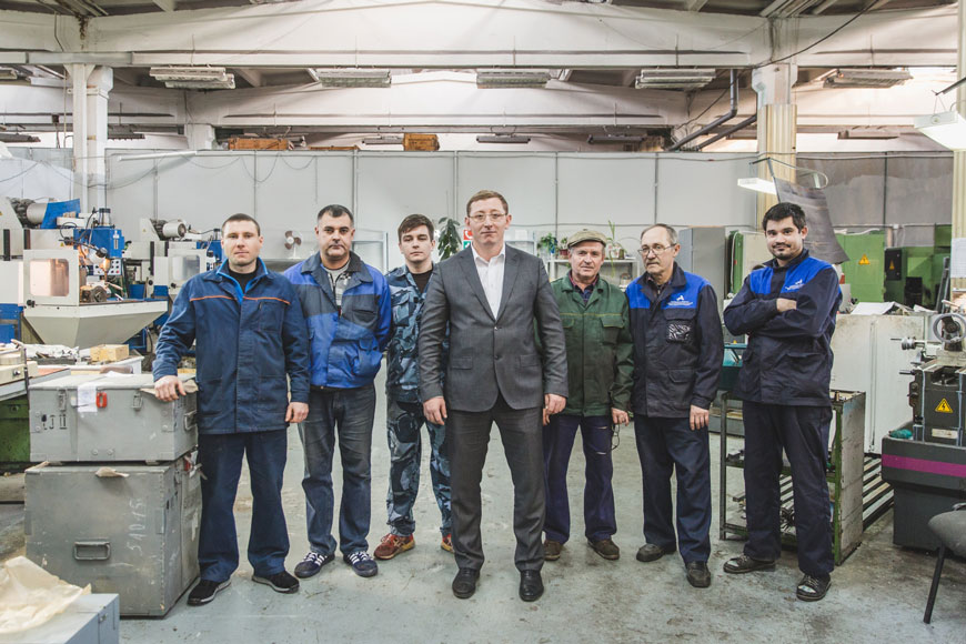 Слева направо: Александр Вячеславович Федяков, Николай Вячеславович Краюшкин, Алексей Алексеевич Карасёв, Павел Игоревич Лытенков, Валерий Владимирович Дрыкин, Дмитрий Александрович Шувалов, Вячеслав Васильевич Клопков, токарно-фрезерный участок ЦМО