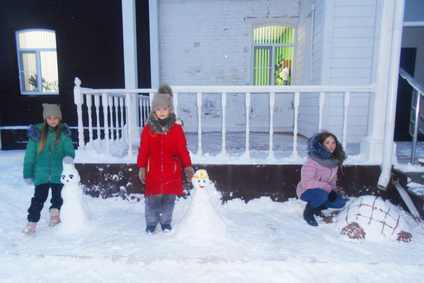 Один из дней был посвящён традиционной русской забаве – ребята лепили снеговичков, Снегурочек и фигурки животных из снега. Потом снежные творения обрызгали водой, получились ледяные скульптуры, которые до сих пор окружают Общественный центр, напоминая о недавних каникулах.