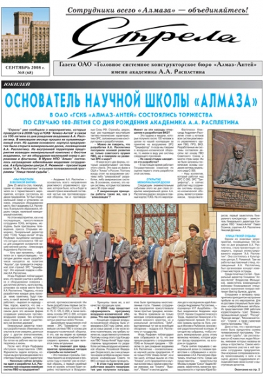 Газета ОАО «Головное системное конструкторское бюро «Алмаз-Антей» имени академика А. А. Расплетина»