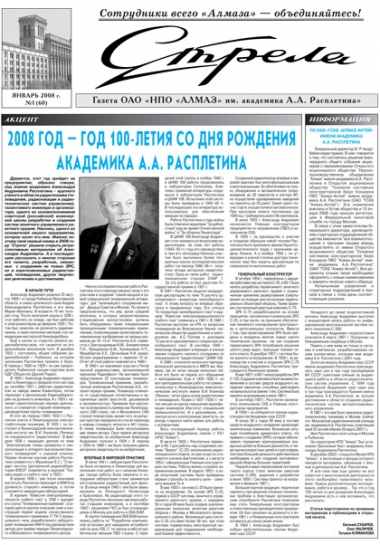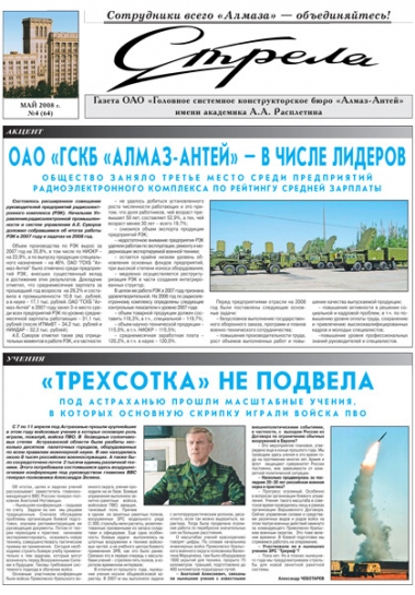 Газета ОАО «Головное системное конструкторское бюро «Алмаз-Антей» имени академика А. А. Расплетина»