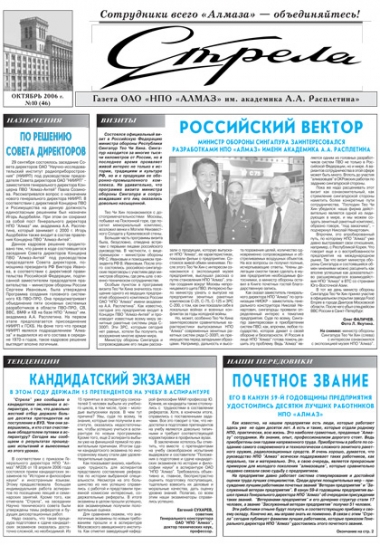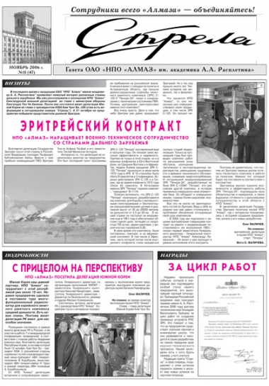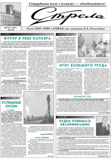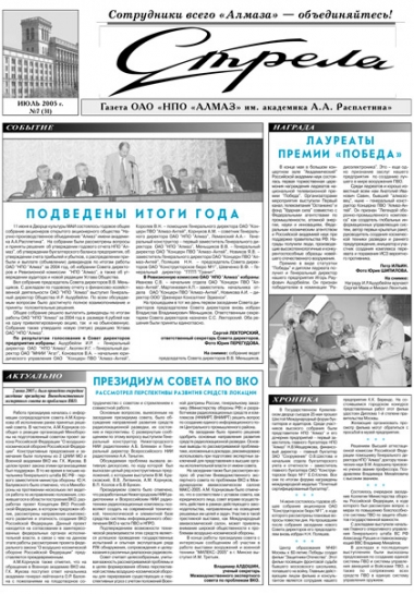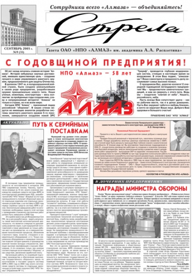 31 января 2003 года после длительного 18-летнего перерыва вышел в свет первый обновлённый номер газеты «Стрела», призванной освещать жизнь и деятельность предприятия ОАО «НПО «Алмаз» имени академика А. А. Расплетина».