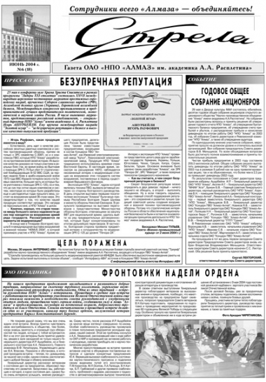 Газета ОАО «Головное системное конструкторское бюро «Алмаз-Антей» имени академика А. А. Расплетина»