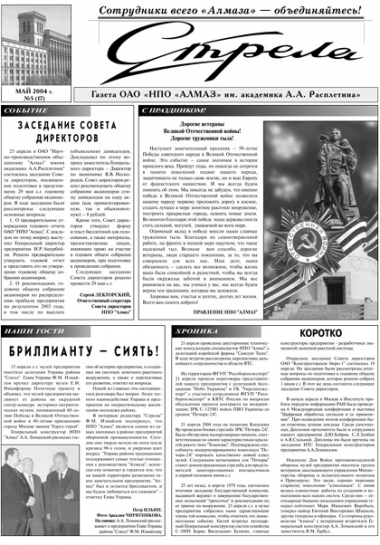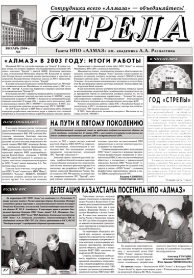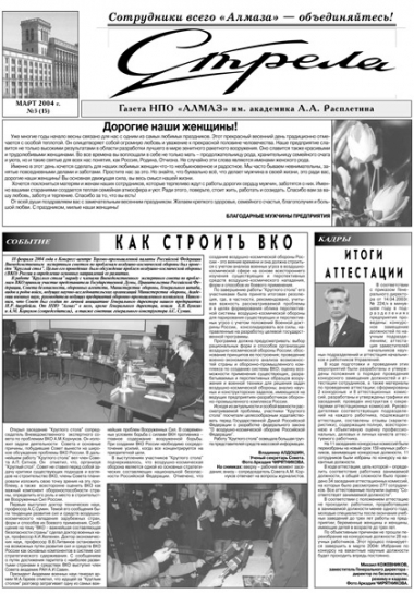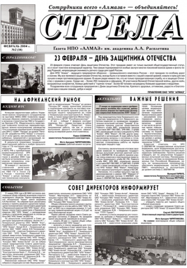 31 января 2003 года после длительного 18-летнего перерыва вышел в свет первый обновлённый номер газеты «Стрела», призванной освещать жизнь и деятельность предприятия ОАО «НПО «Алмаз» имени академика А. А. Расплетина».