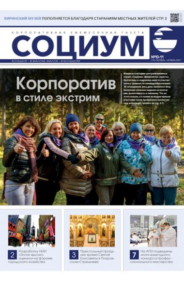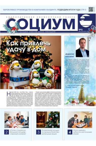 Корпоративной газеты «СОЦИУМ» будет выходить 6 выпусков в год. Корпоративная — не значит узко специализированная, для служебного пользования. Газета под названием «СОЦИУМ» такой быть не может. Корпоративная - значит коллективная, общая информационная площадка, открытая для всех и каждого сотрудника холдинга трибуна, совместно пополняемая копилка производственного, социального и житейского опыта.