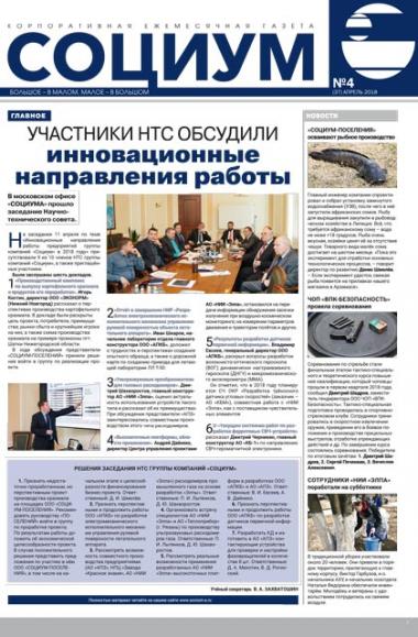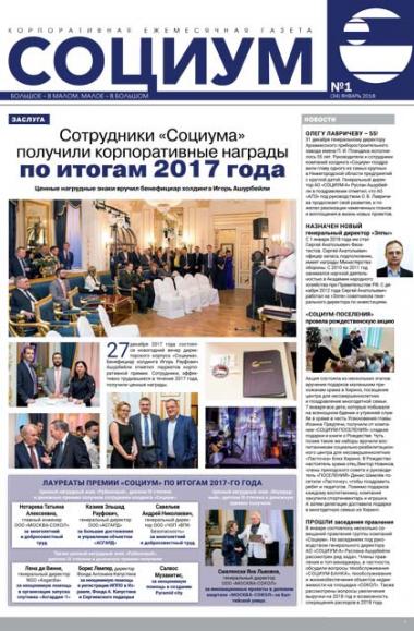 Корпоративной газеты «СОЦИУМ» будет выходить 6 выпусков в год. Корпоративная — не значит узко специализированная, для служебного пользования. Газета под названием «СОЦИУМ» такой быть не может. Корпоративная - значит коллективная, общая информационная площадка, открытая для всех и каждого сотрудника холдинга трибуна, совместно пополняемая копилка производственного, социального и житейского опыта.