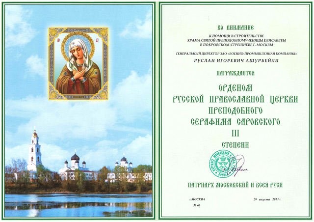 29 августа 2013 года Патриарх Московский и всея Руси Кирилл наградил Р. И. Ашурбейли орденом русской православной церкви Преподобного Серафима Саровского III степени.