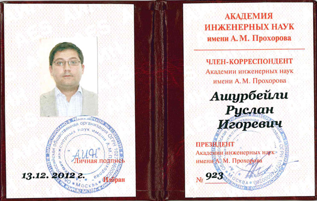 В 2009 году Руслану Игоревичу присвоена степень Кандидата технических наук в центральном научно-исследовательском институте экономики, информатики и систем управления.
