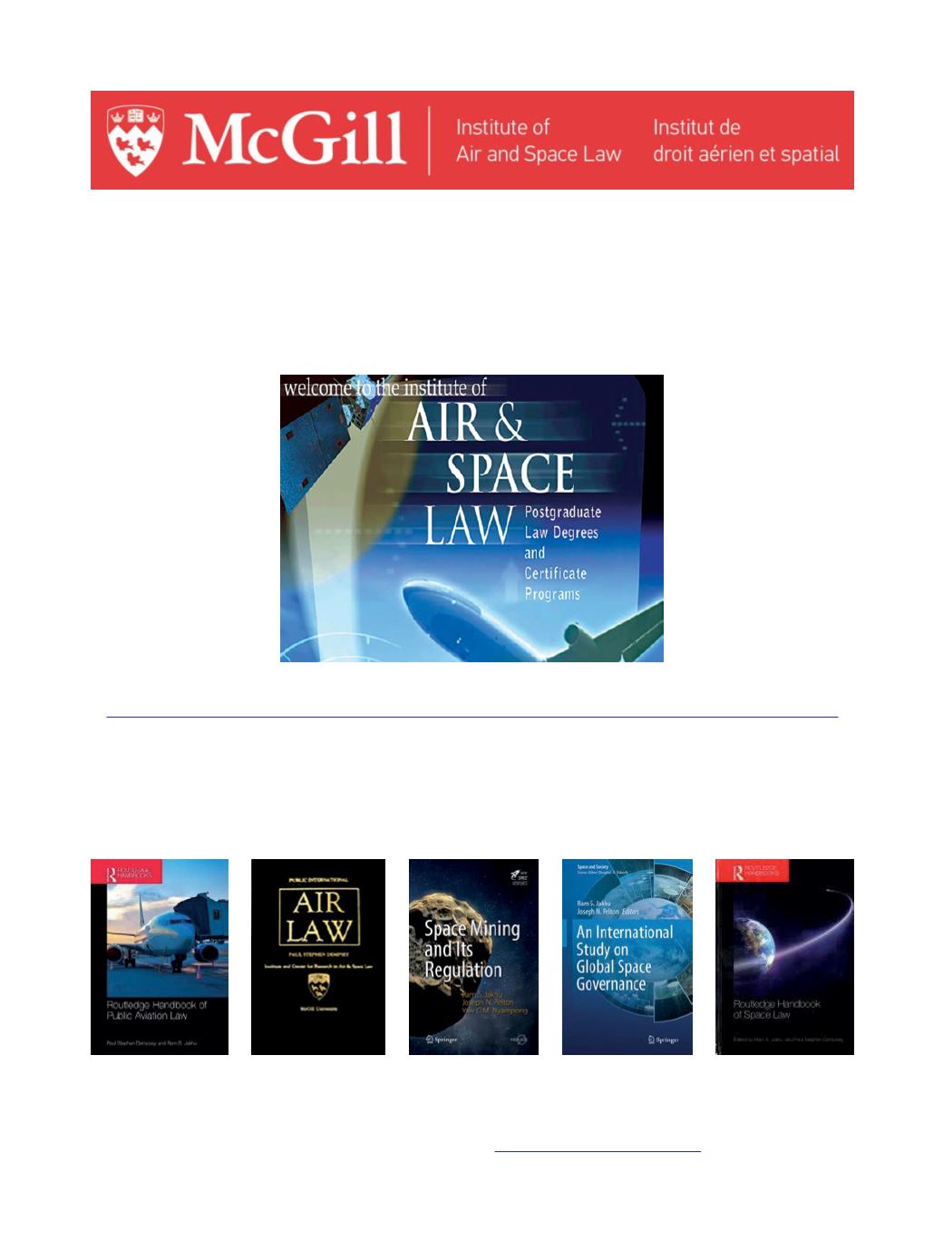legal expert, consider studying at McGill’s Institute of Air and Space Law, the